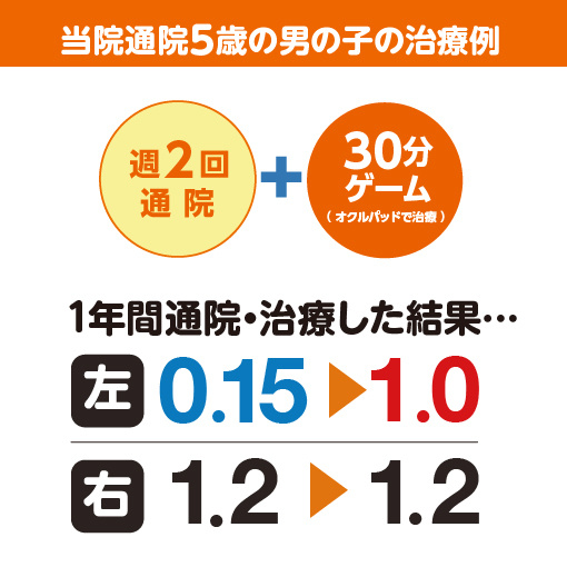 視覚に関わる脳の発達は8歳までに完成するとされていますので、3歳児検診で発見されると、早期の治療が始められます。